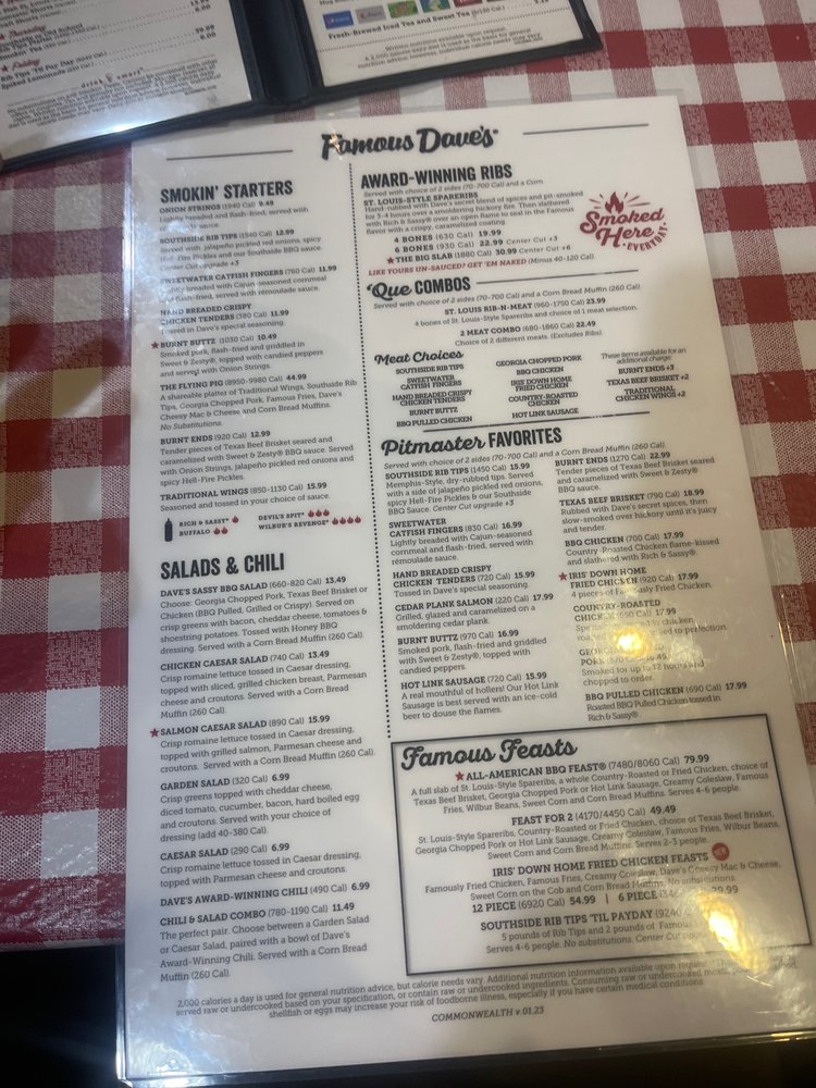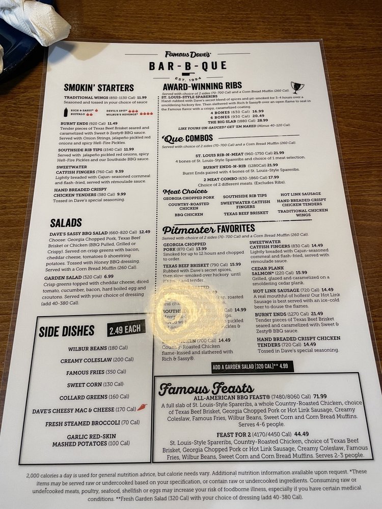 Famous Dave's Bar-B-Que MD Menu